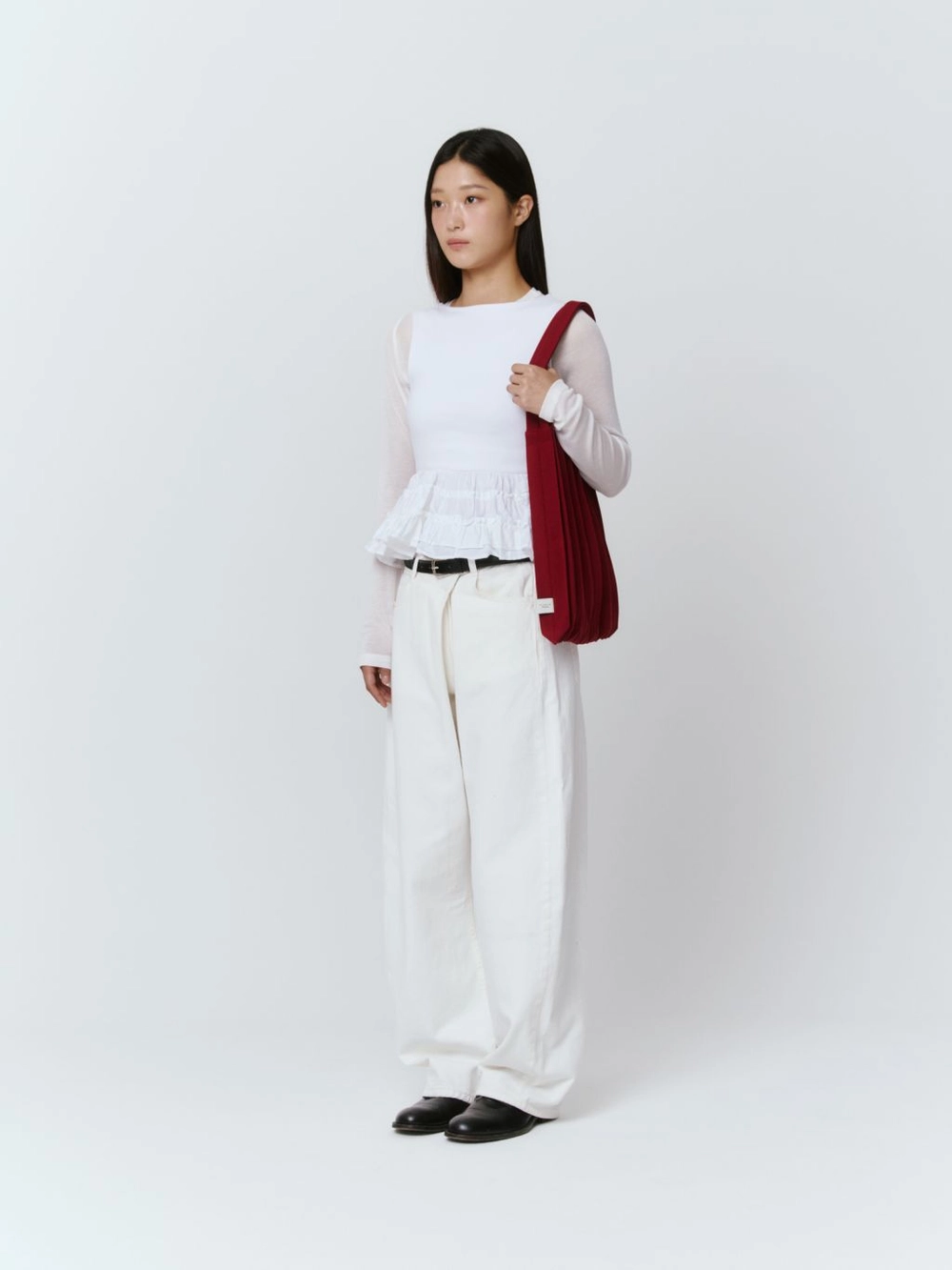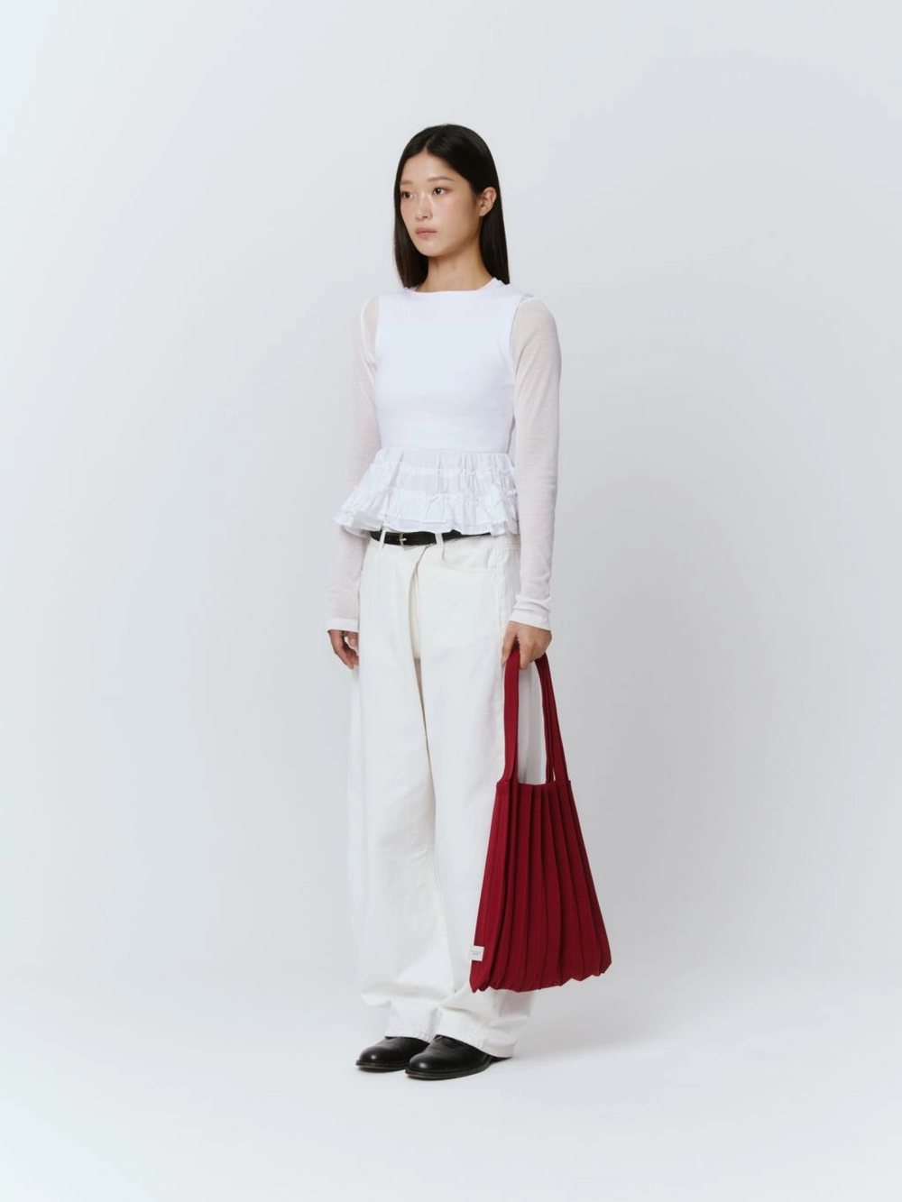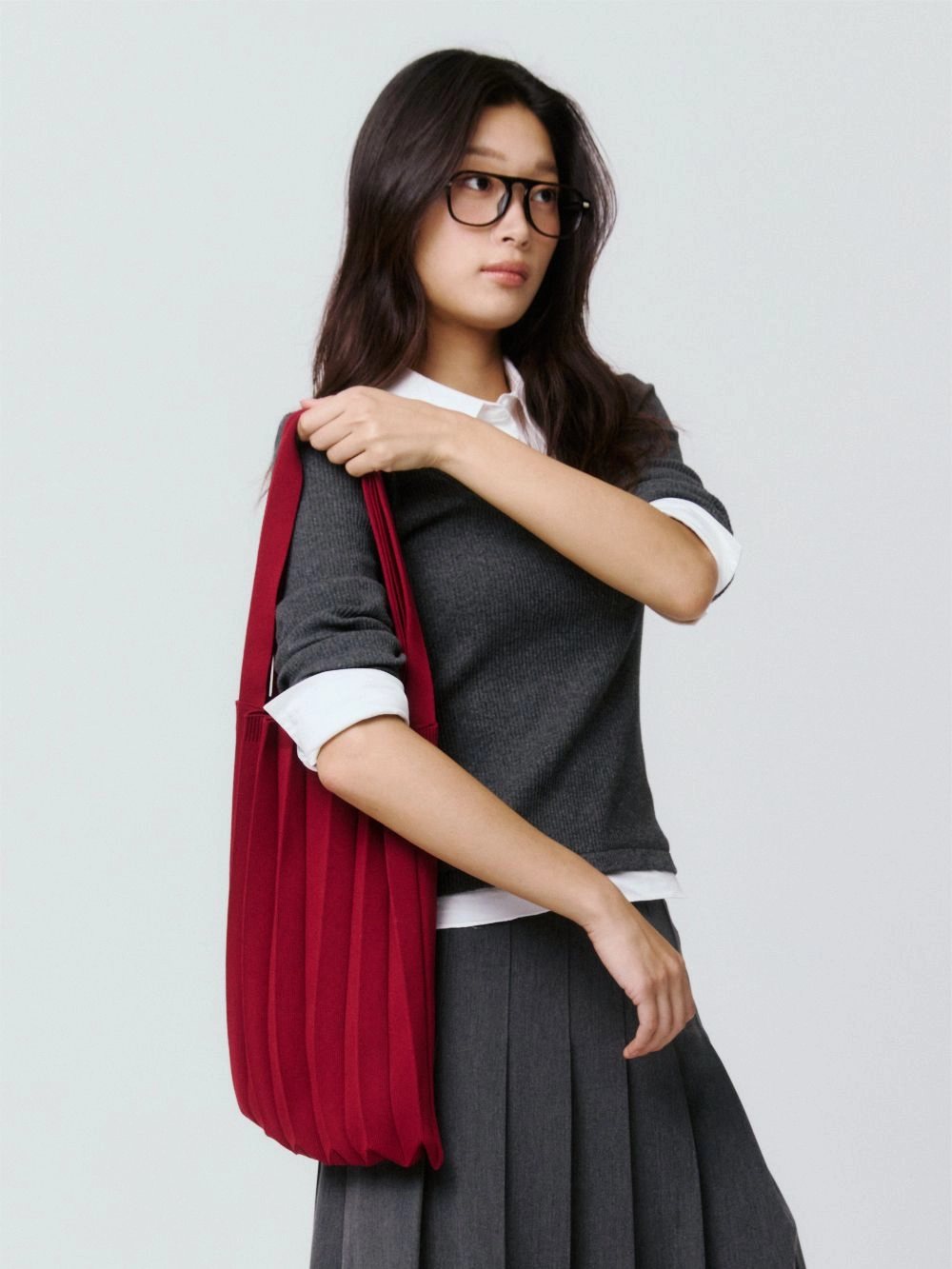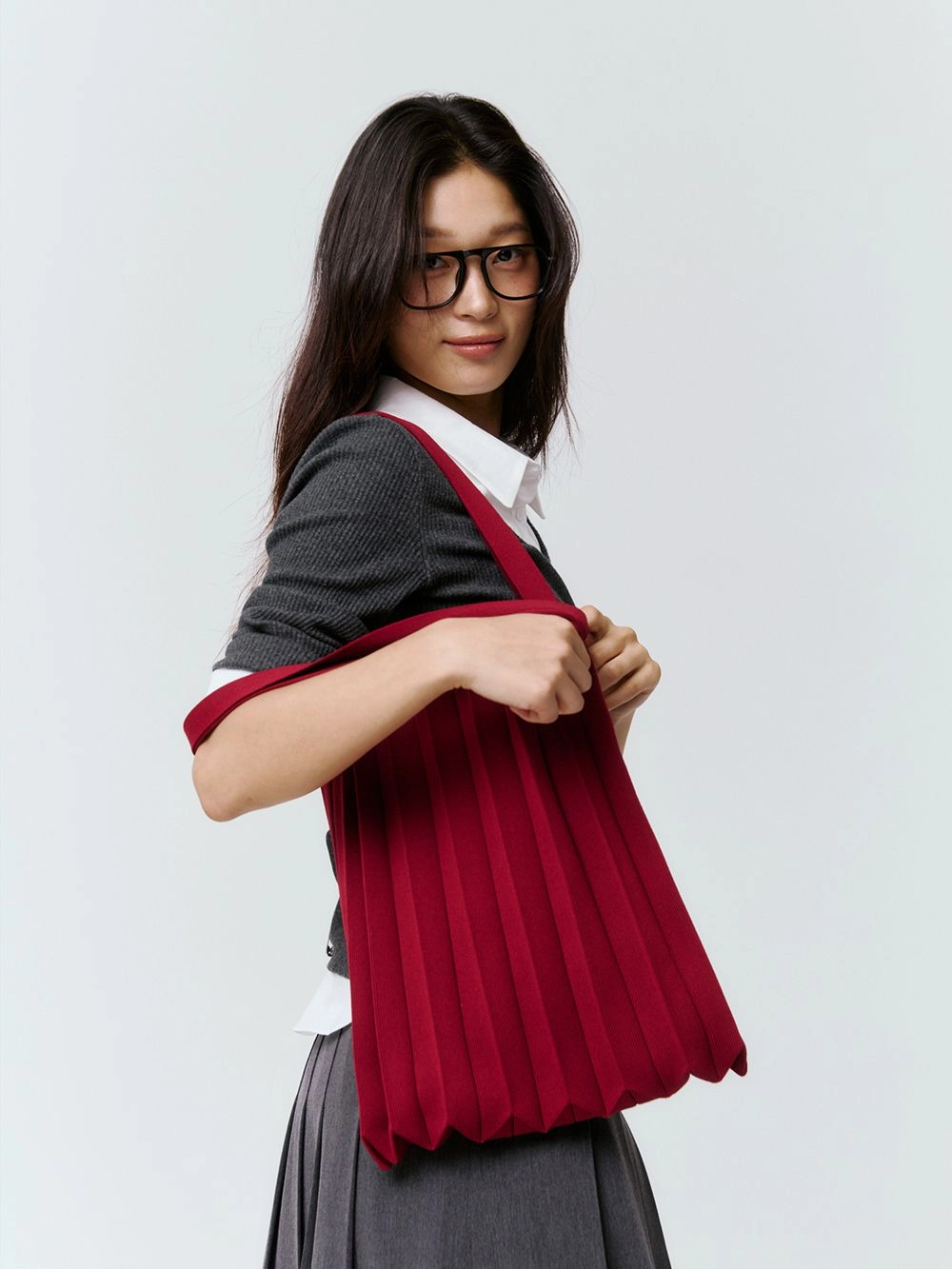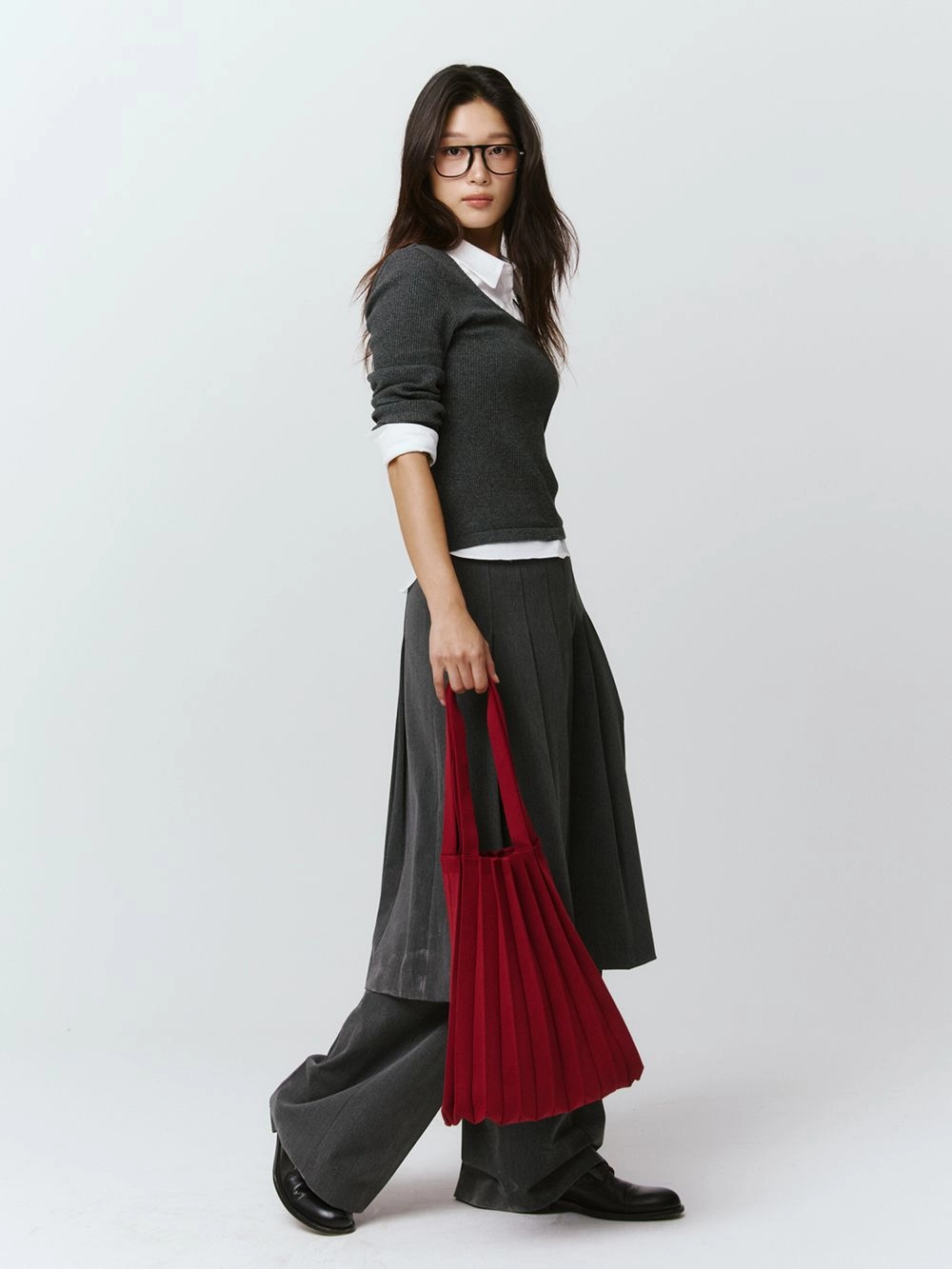 * 니트와 플리츠 디자인 특성상 제품의 가로, 세로 사이즈는 유동적으로 늘어날 수 있습니다.