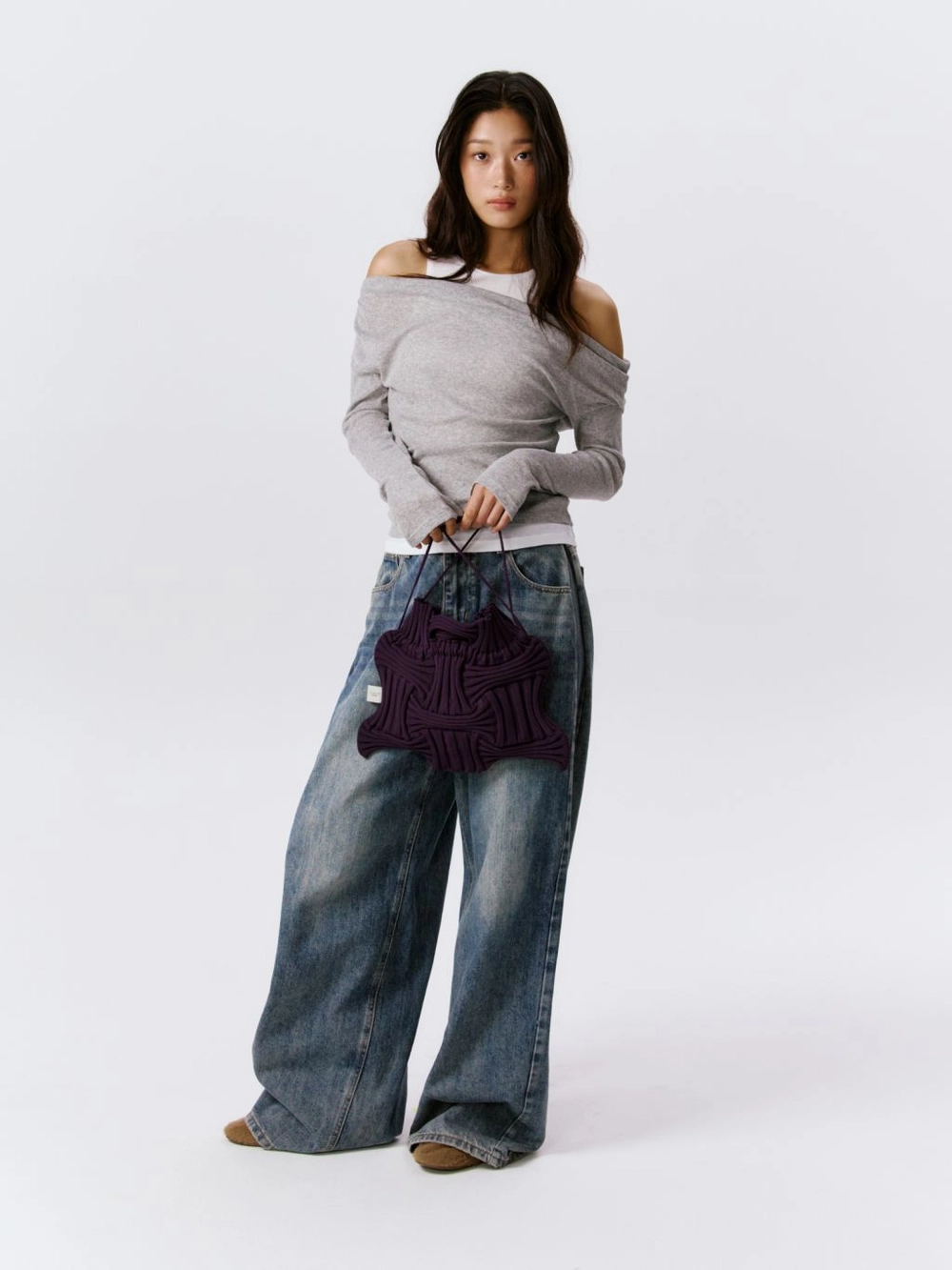 * 니트와 플리츠 디자인 특성상 제품의 가로, 세로 사이즈는 유동적으로 늘어날 수 있습니다.