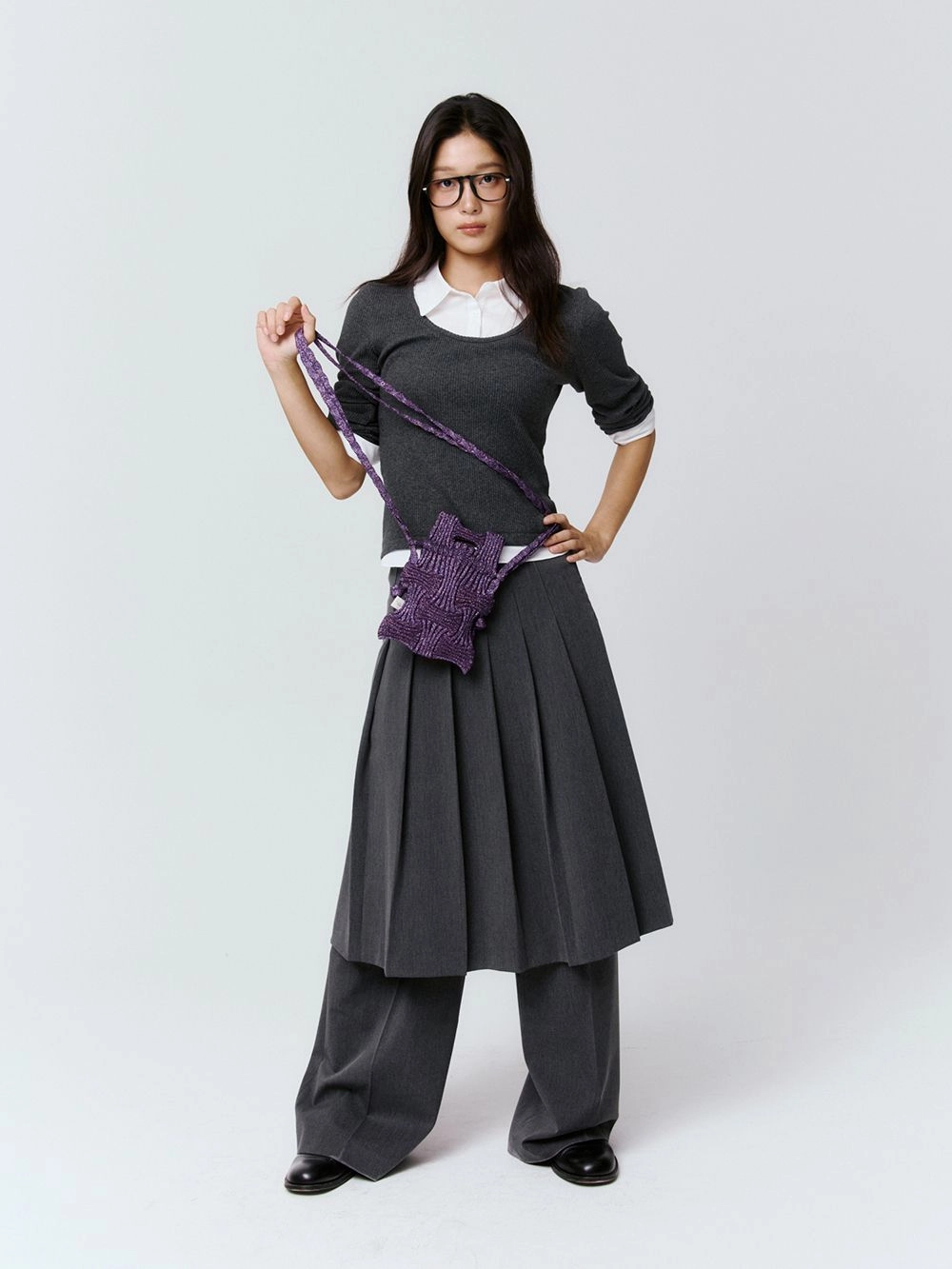 * 니트와 플리츠 디자인 특성상 제품의 가로, 세로 사이즈는 유동적으로 늘어날 수 있습니다.