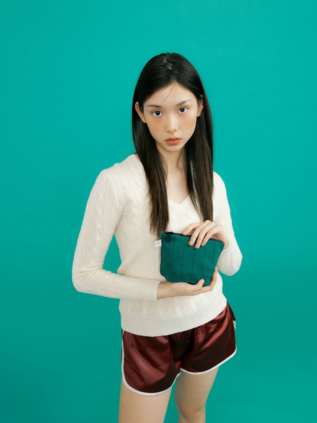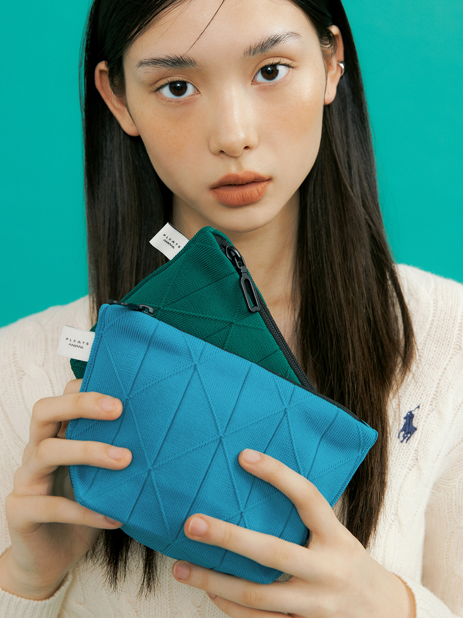 * 니트와 플리츠 디자인 특성상 제품의 가로,세로 사이즈는 유동적으로 늘어날 수 있습니다.