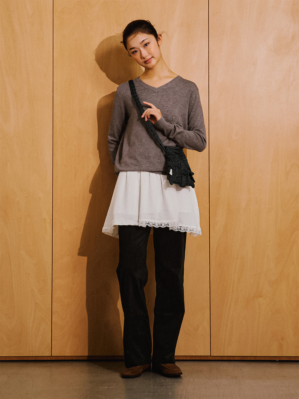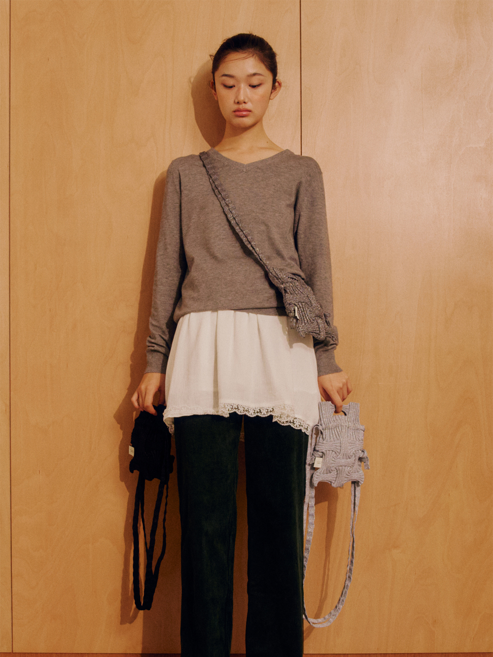 * 니트와 플리츠 디자인 특성상 제품의 가로,세로 사이즈는 유동적으로 늘어날 수 있습니다.