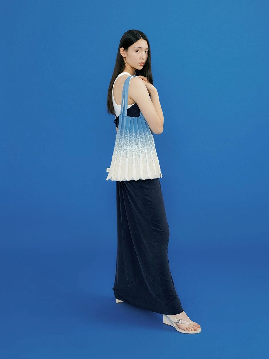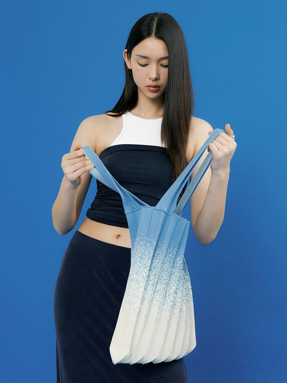 * 니트와 플리츠 디자인 특성상 제품의 가로,세로 사이즈는 유동적으로 늘어날 수 있습니다.