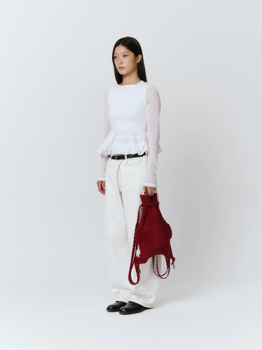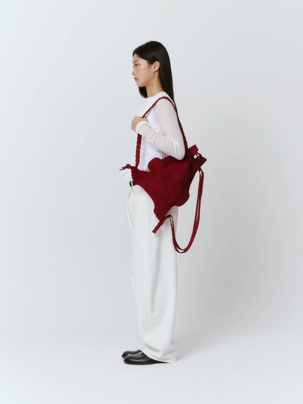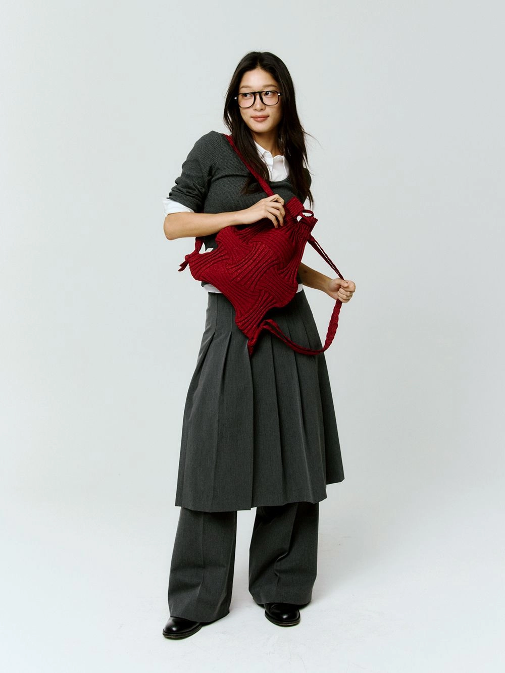 * 니트와 플리츠 디자인 특성상 제품의 가로, 세로 사이즈는 유동적으로 늘어날 수 있습니다.