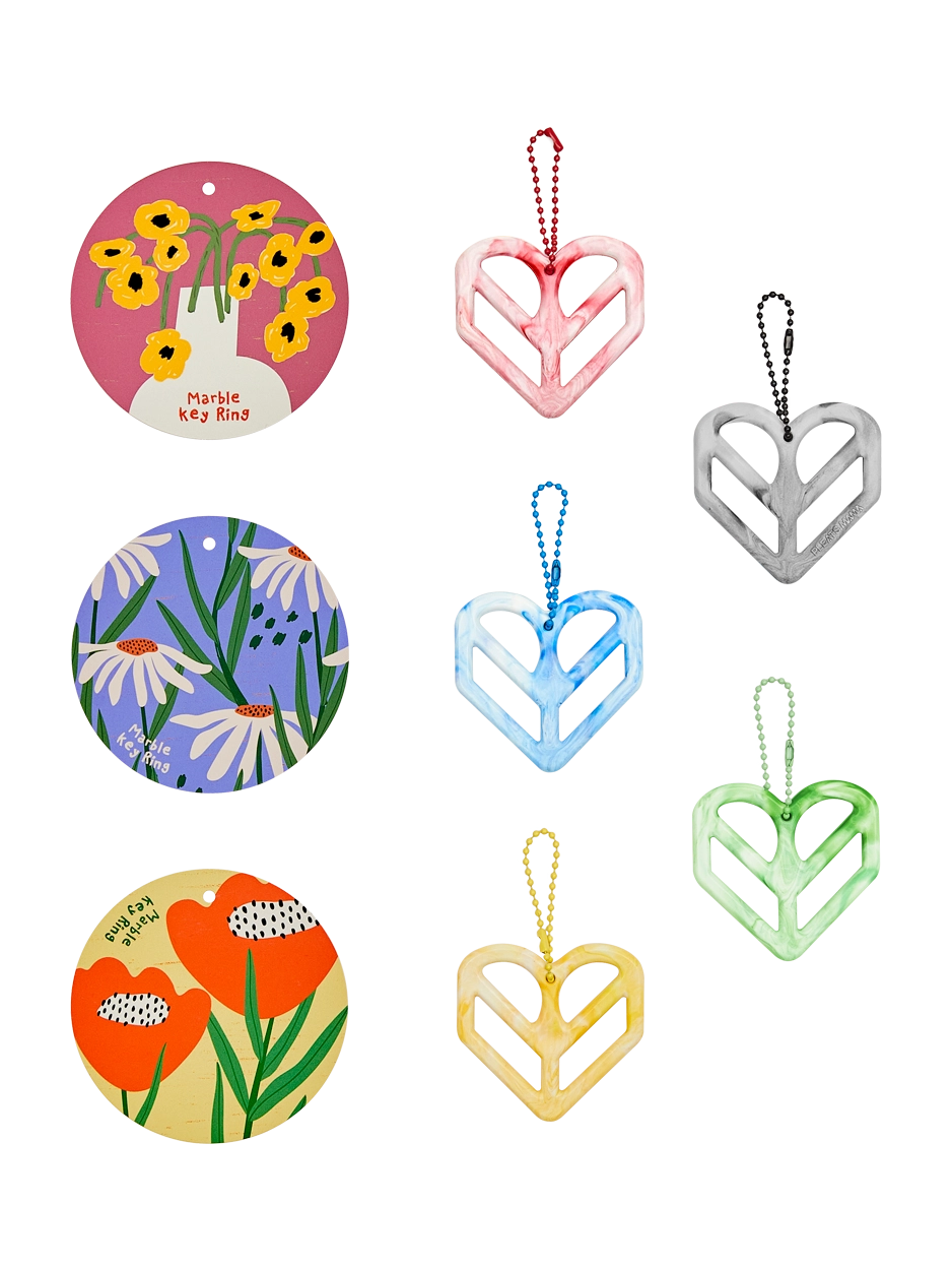 약 5개의 병뚜껑을 리사이클하여 제작된 키링으로, 플리츠마마의 진심을 담은 하트 쉐입과 비비드한 컬러감이 특징입니다.