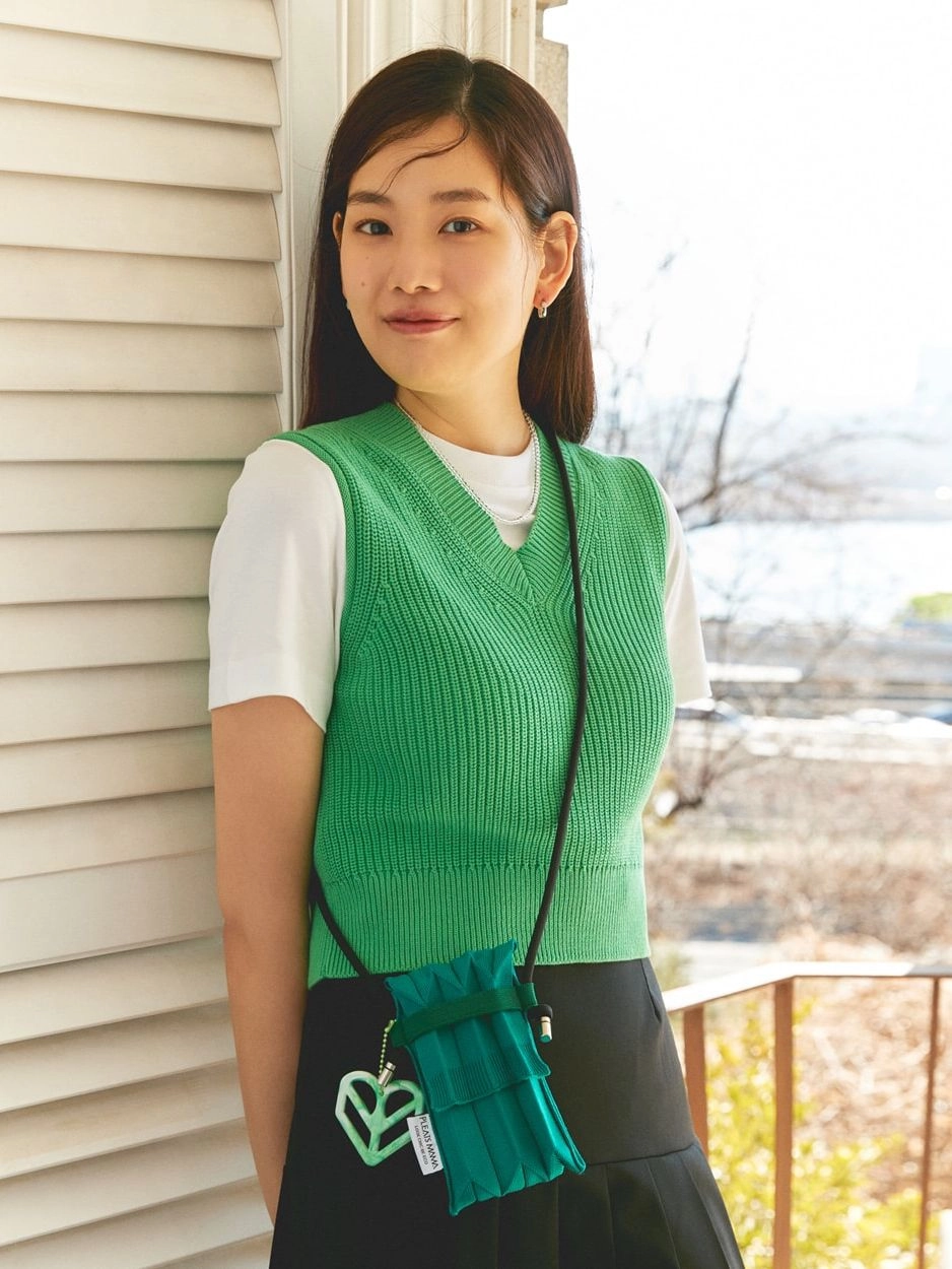 * 니트와 플리츠 디자인 특성상 제품의 가로,세로 사이즈는 유동적으로 늘어날 수 있습니다.