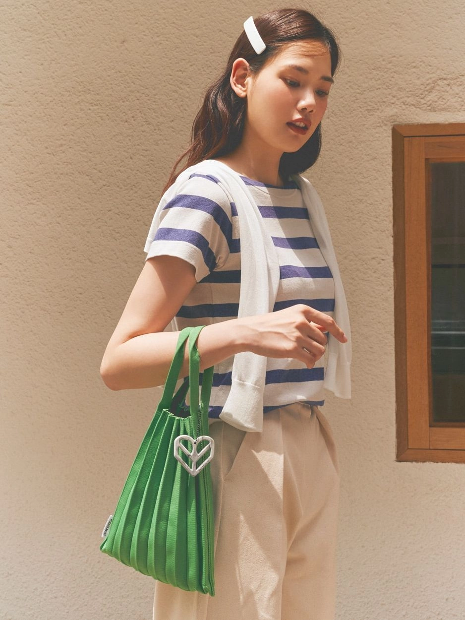 * 니트와 플리츠 디자인 특성상 제품의 가로,세로 사이즈는 유동적으로 늘어날 수 있습니다.