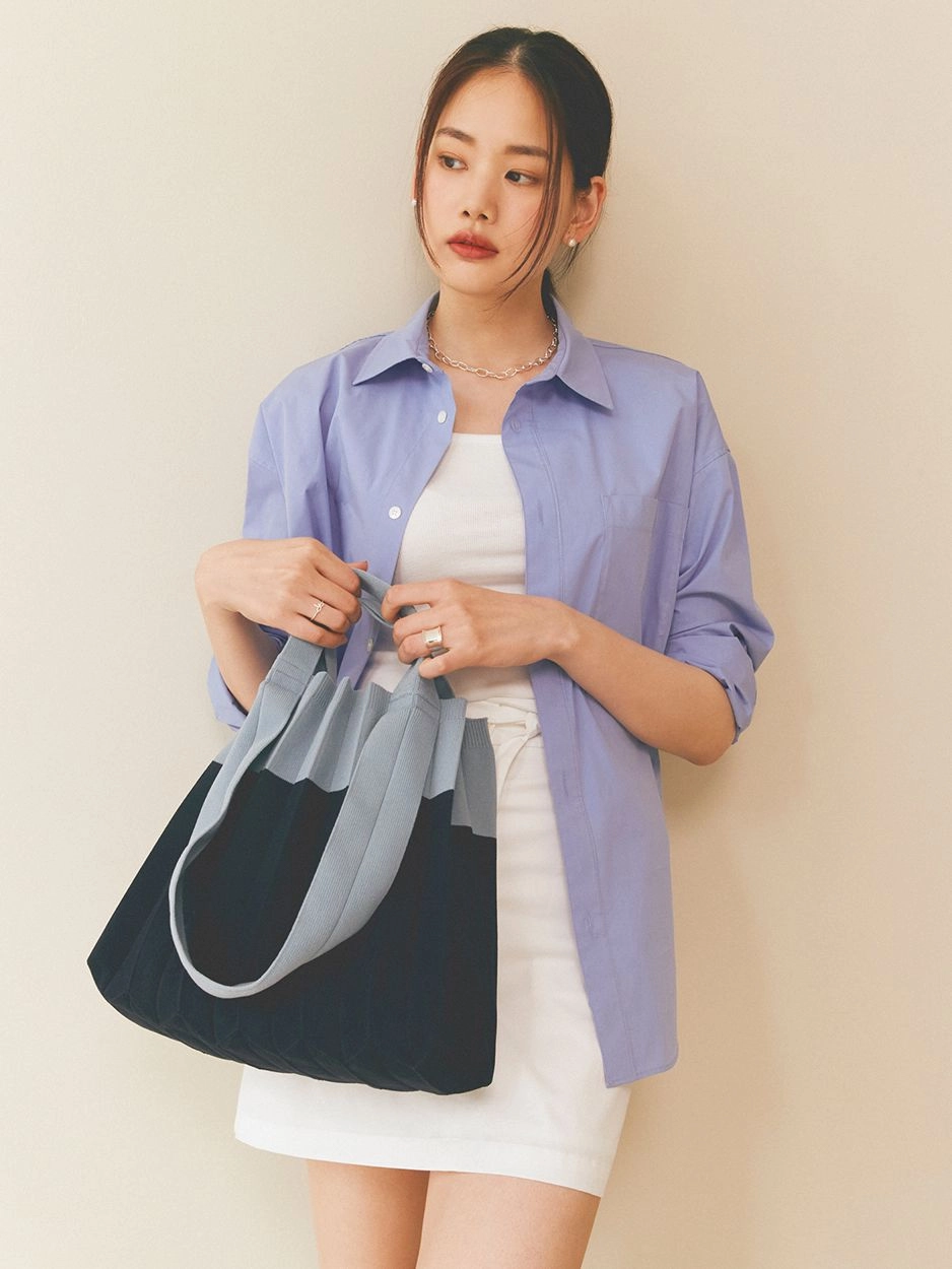 * 니트와 플리츠 디자인 특성상 제품의 가로,세로 사이즈는 유동적으로 늘어날 수 있습니다.