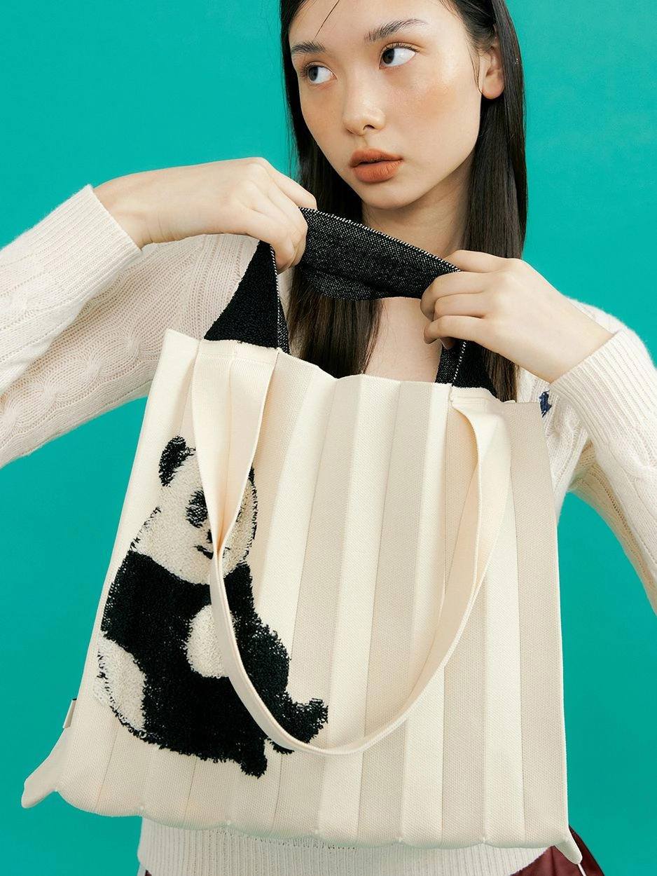 * 니트와 플리츠 디자인 특성상 제품의 가로,세로 사이즈는 유동적으로 늘어날 수 있습니다.