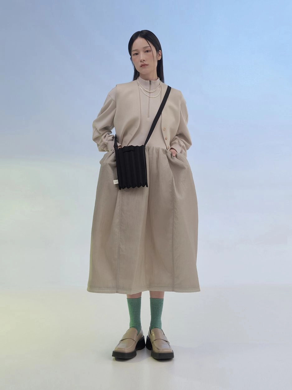 * 니트와 플리츠 디자인 특성상 제품의 가로,세로 사이즈는 유동적으로 늘어날 수 있습니다.