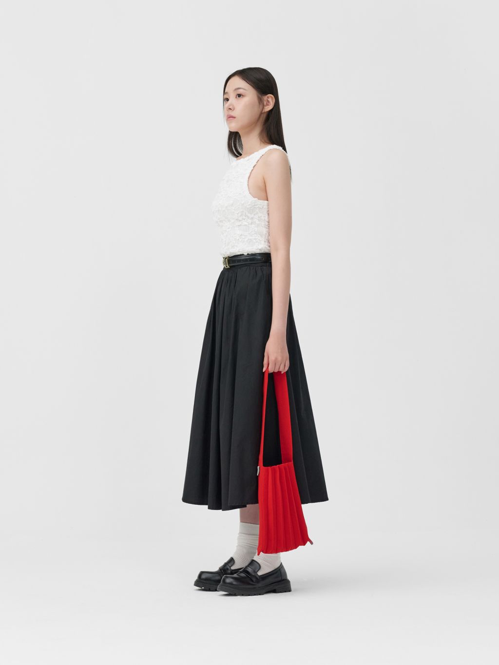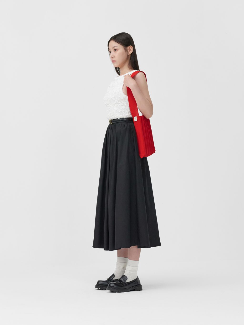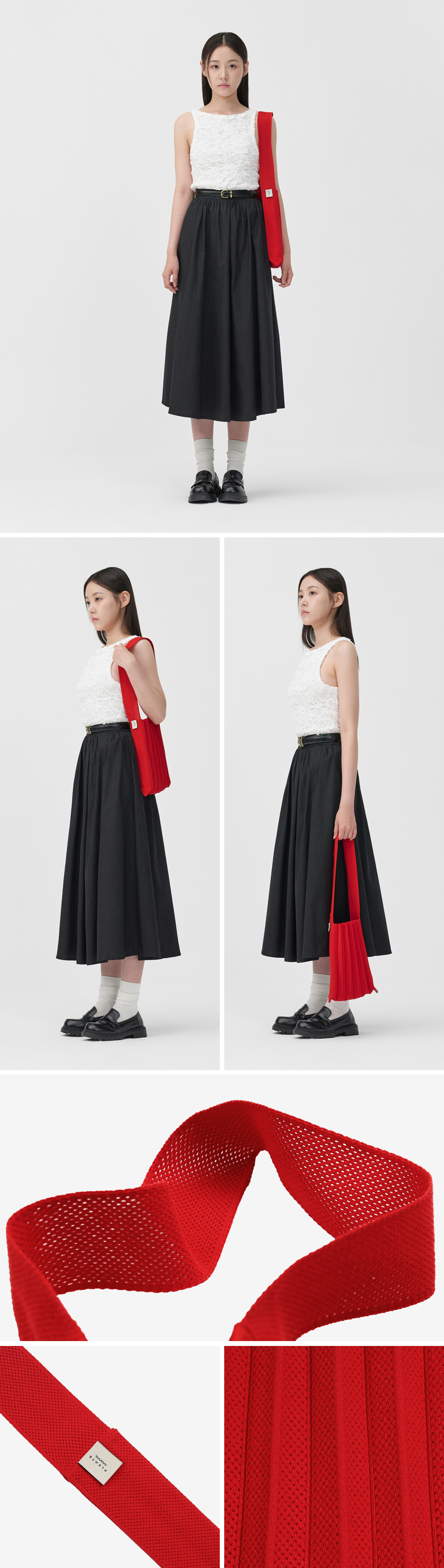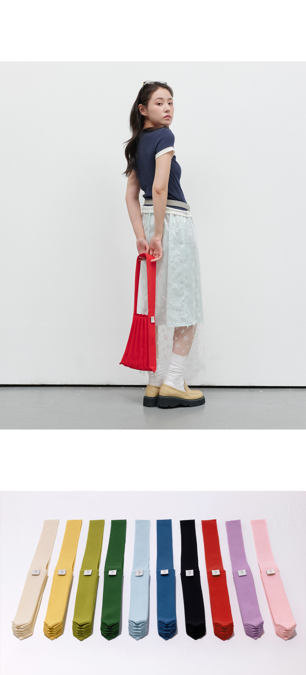 * 니트와 플리츠 디자인 특성상 제품의 가로, 세로 사이즈는 유동적으로 늘어날 수 있습니다.