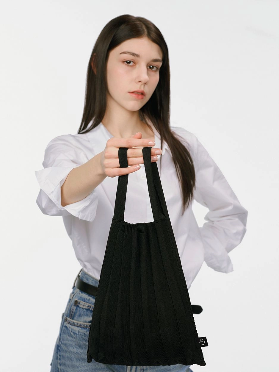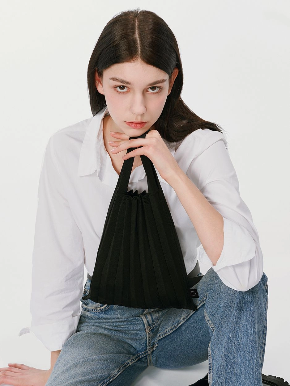 * 니트와 플리츠 디자인 특성상 제품의 가로,세로 사이즈는 유동적으로 늘어날 수 있습니다.