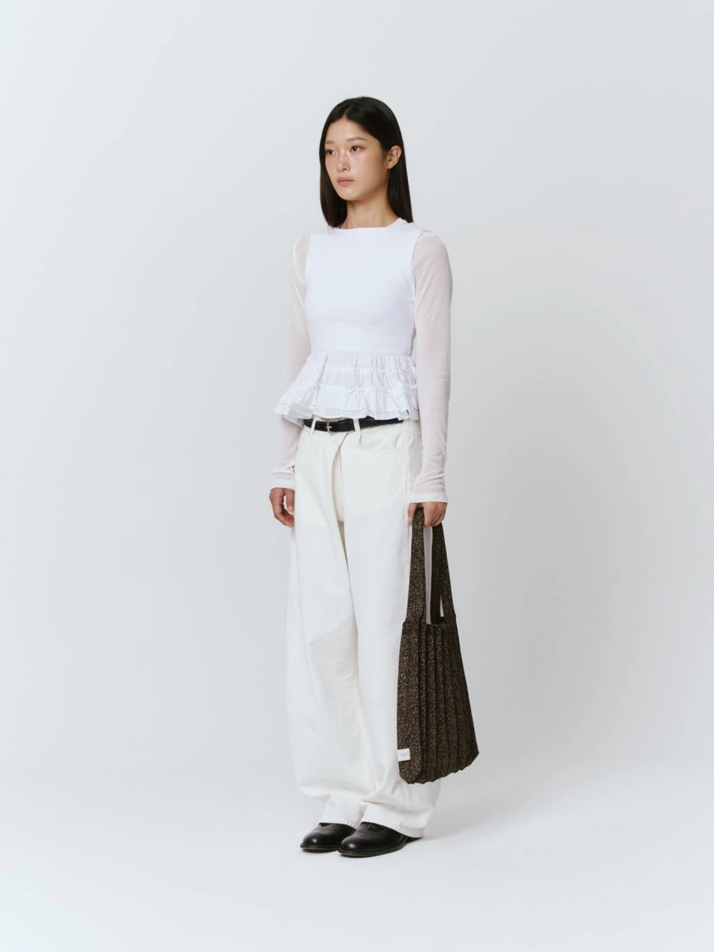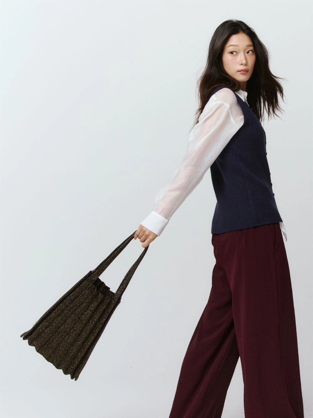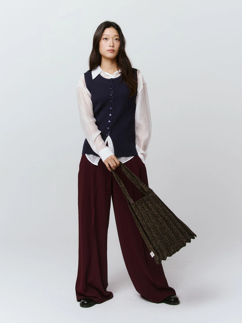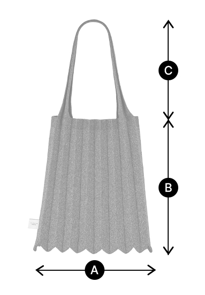 * 니트와 플리츠 디자인 특성상 제품의 가로, 세로 사이즈는 유동적으로 늘어날 수 있습니다.