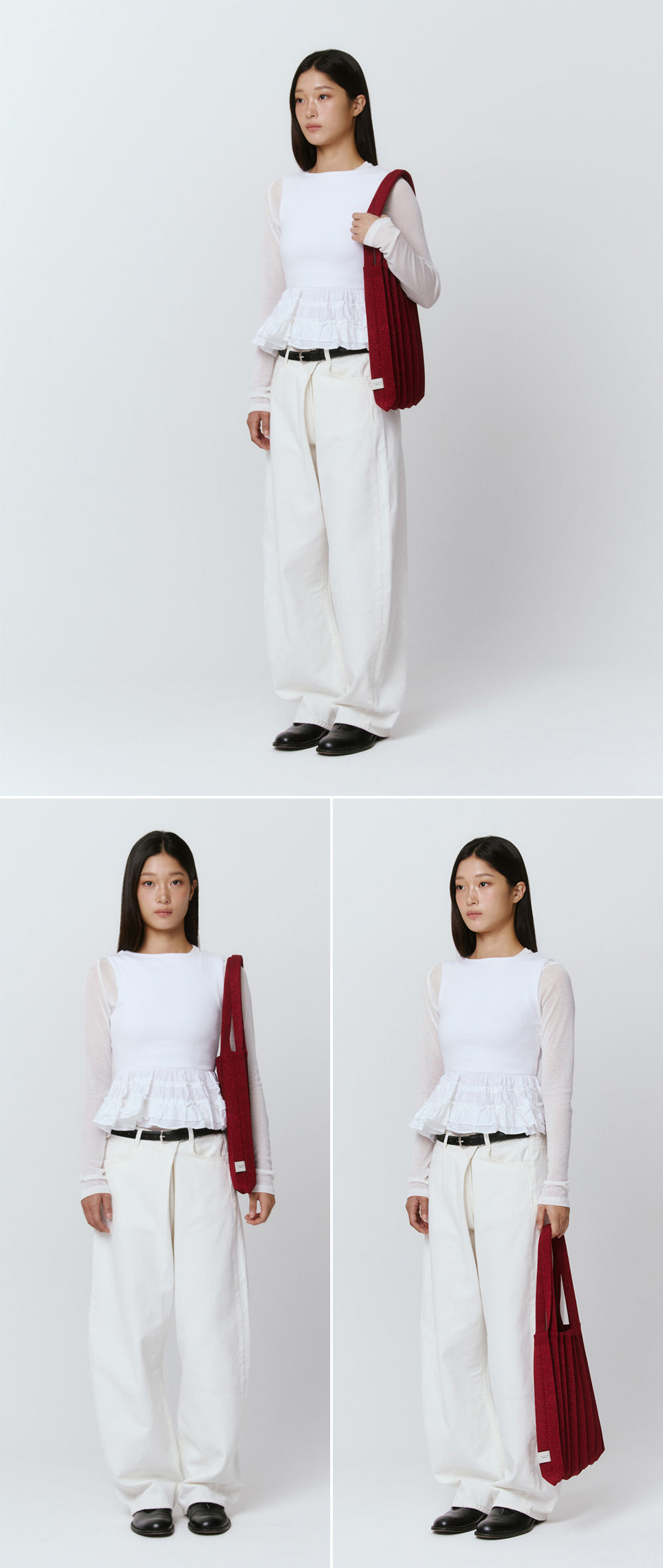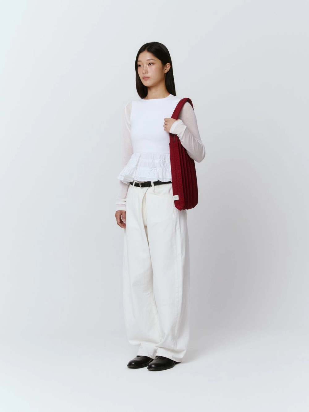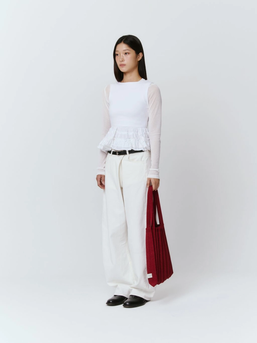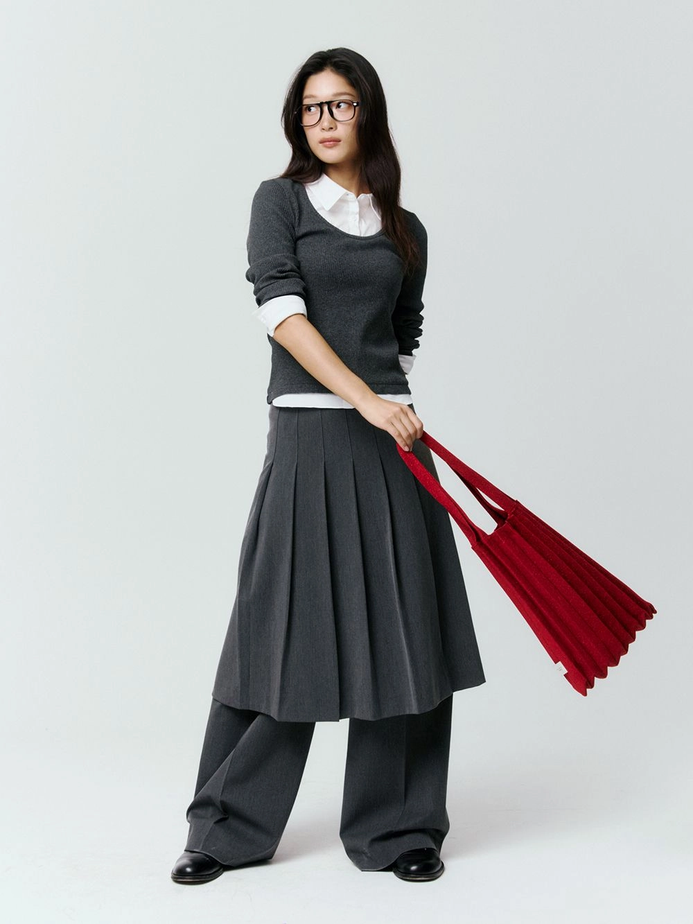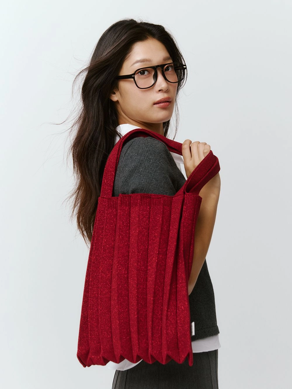 * 니트와 플리츠 디자인 특성상 제품의 가로, 세로 사이즈는 유동적으로 늘어날 수 있습니다.